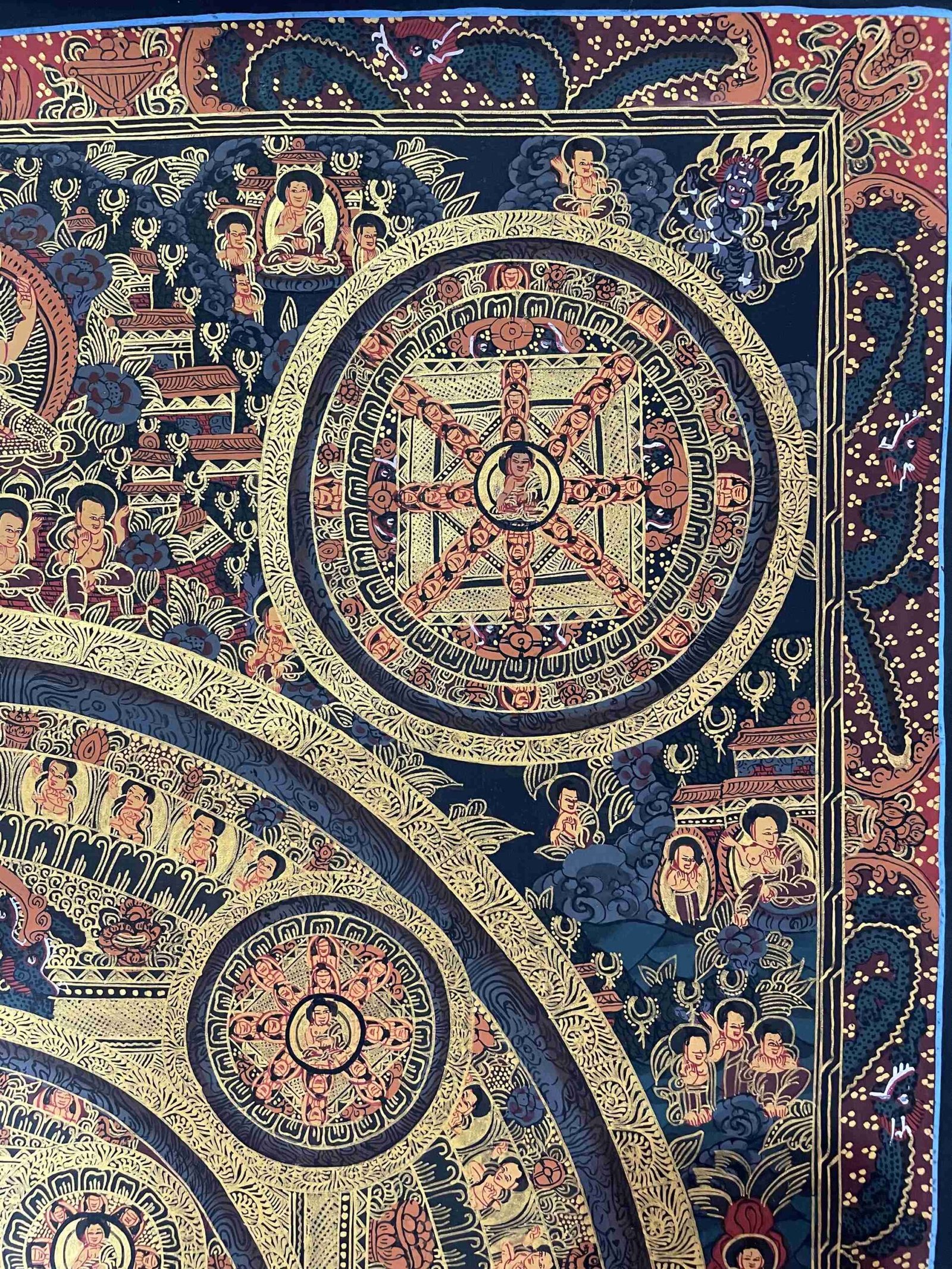 Buddhist Handmade Thangka Painting of 14 Mandalas – Real Gold, Hand-Painted