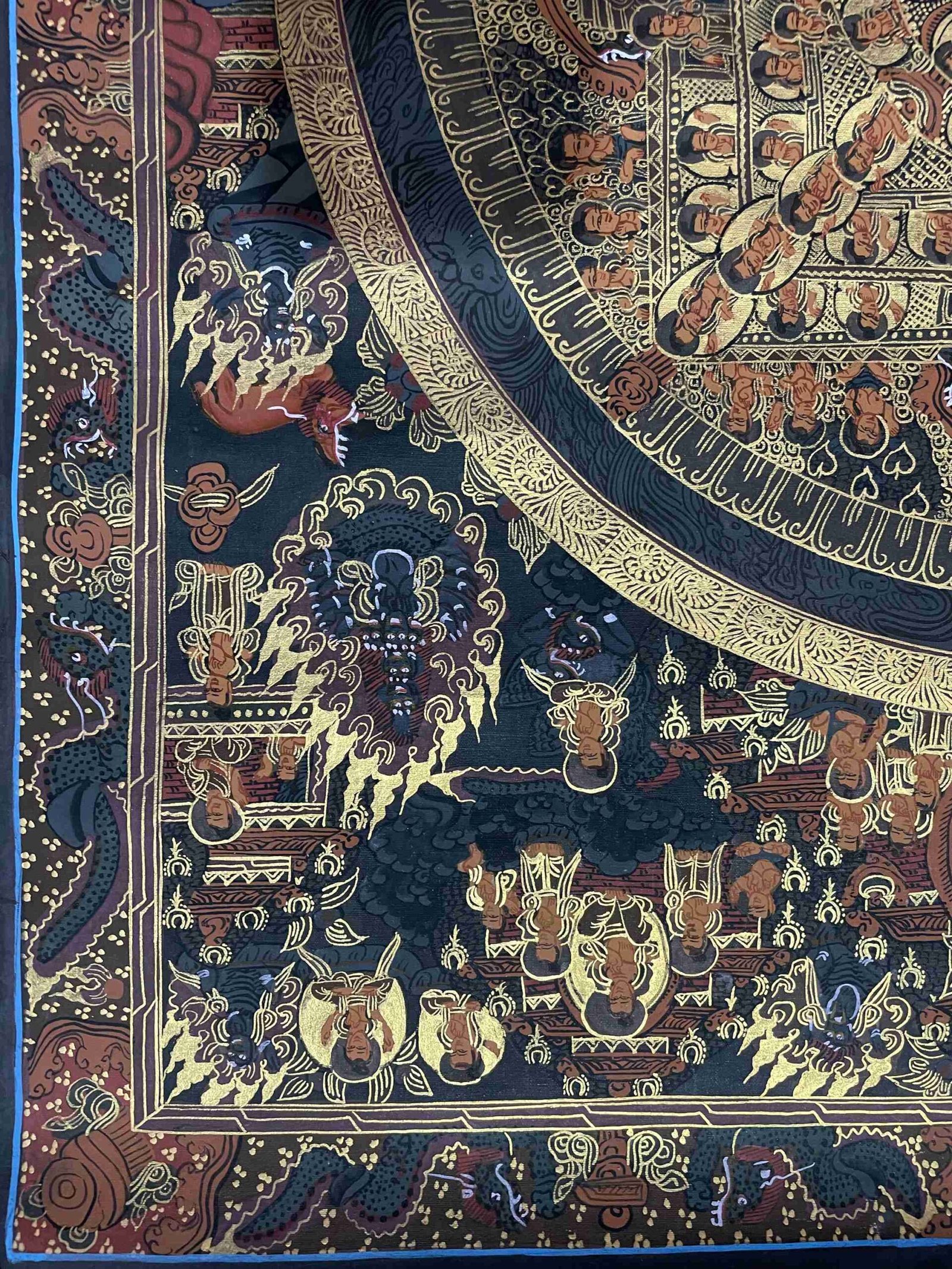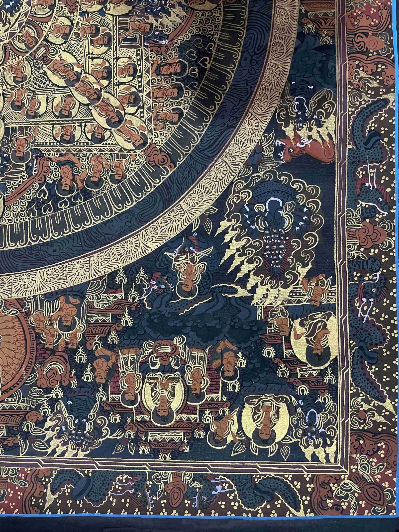 Symbolic Importance: Gold in Thangka paintings signifies enlightenment, purity, and divine energy, making the artwork even more revered.