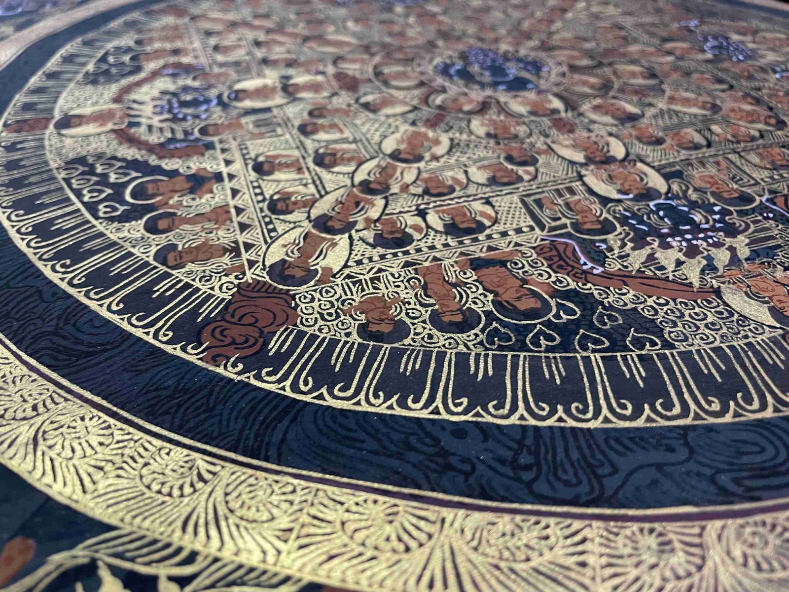 To ensure longevity, store Thangkas in a dry place, away from direct sunlight and moisture.