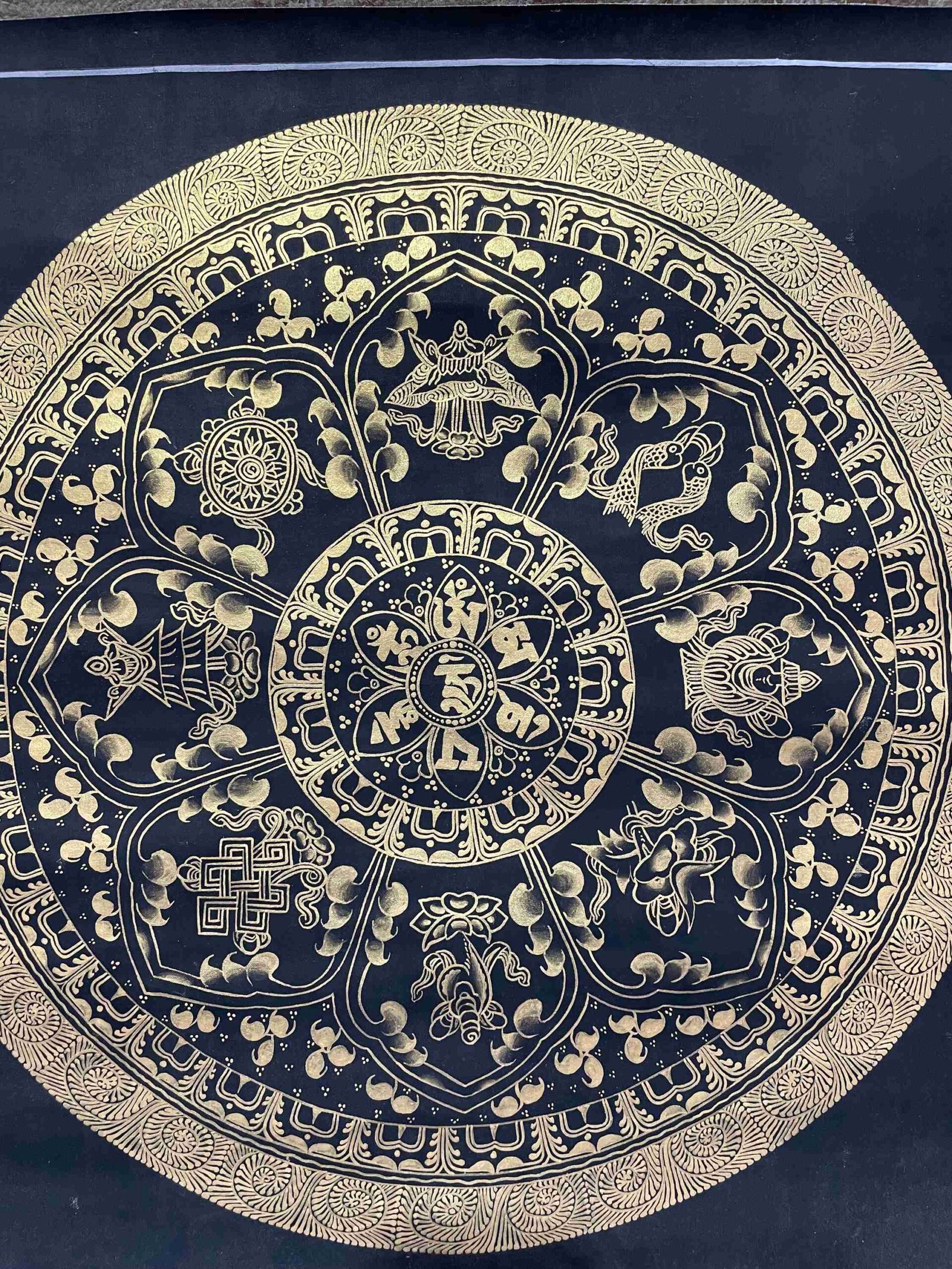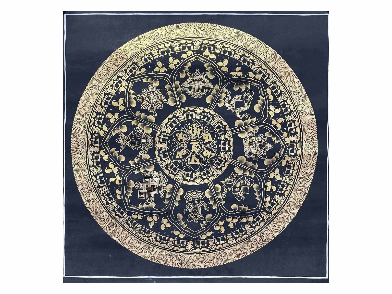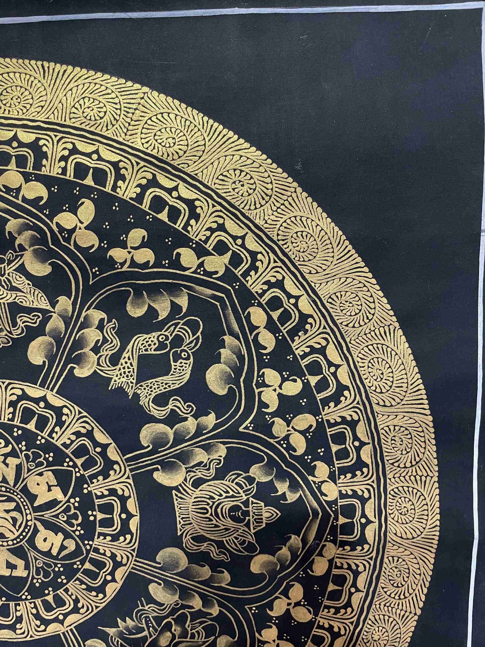 Buddhist Handmade Thangka Painting of Mantra Mandala – Real Gold, Hand-Painted, Sacred Art