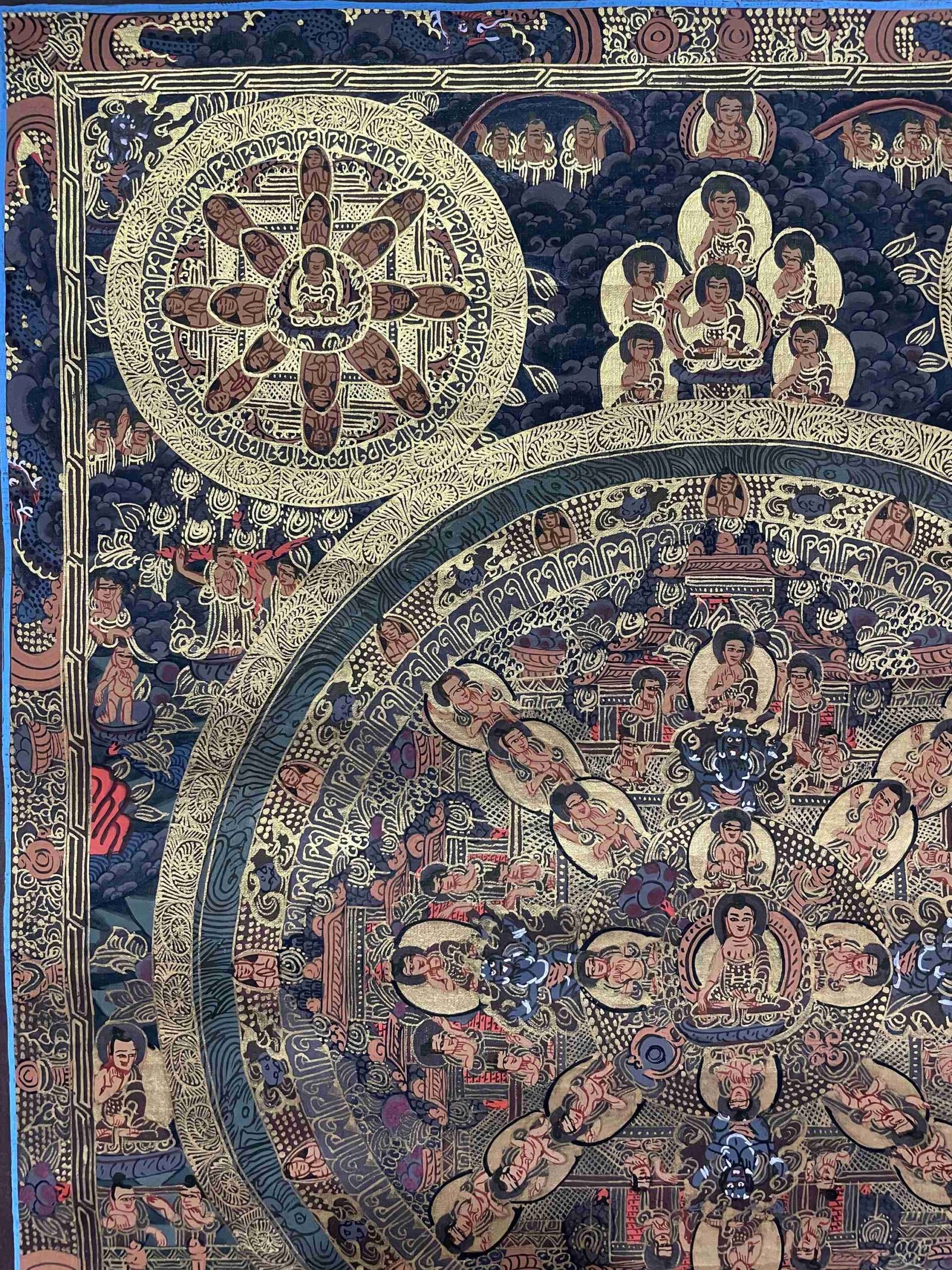 ✔ Depicts Buddhist deities, sacred mandalas, and spiritual teachings.