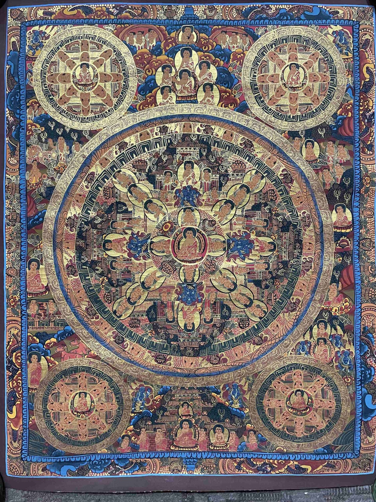 Buddhist Handmade Thangka Painting of Pancha Buddha – Real Gold, Hand-Painted