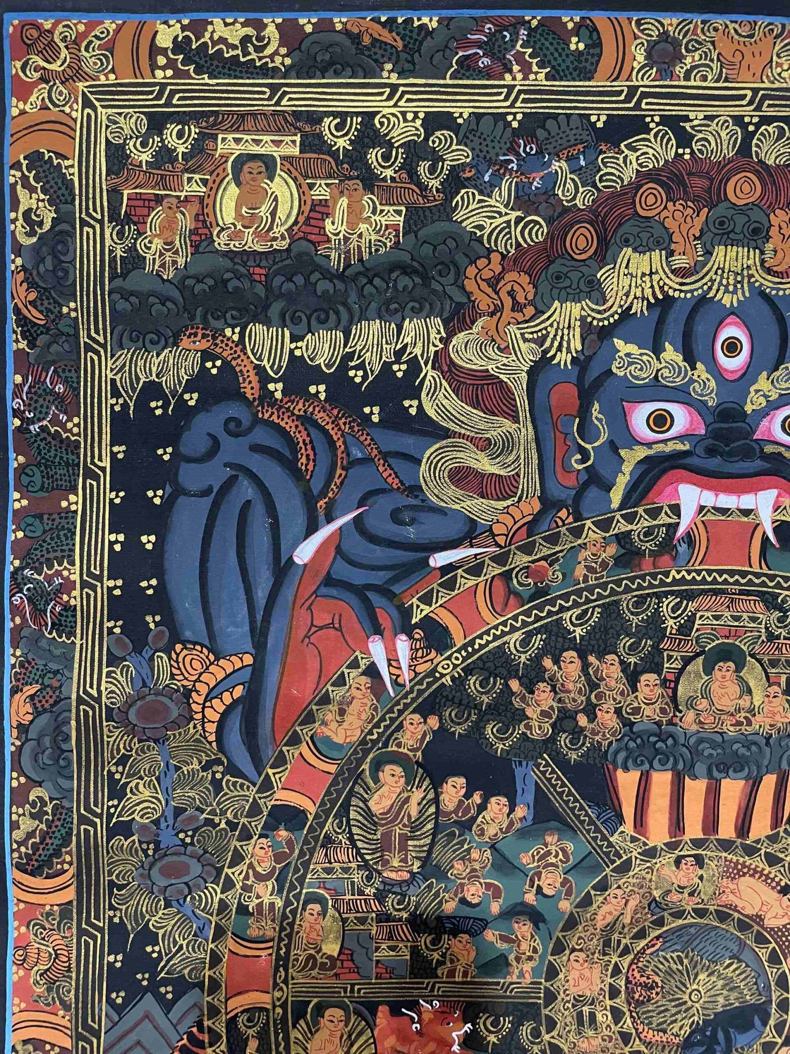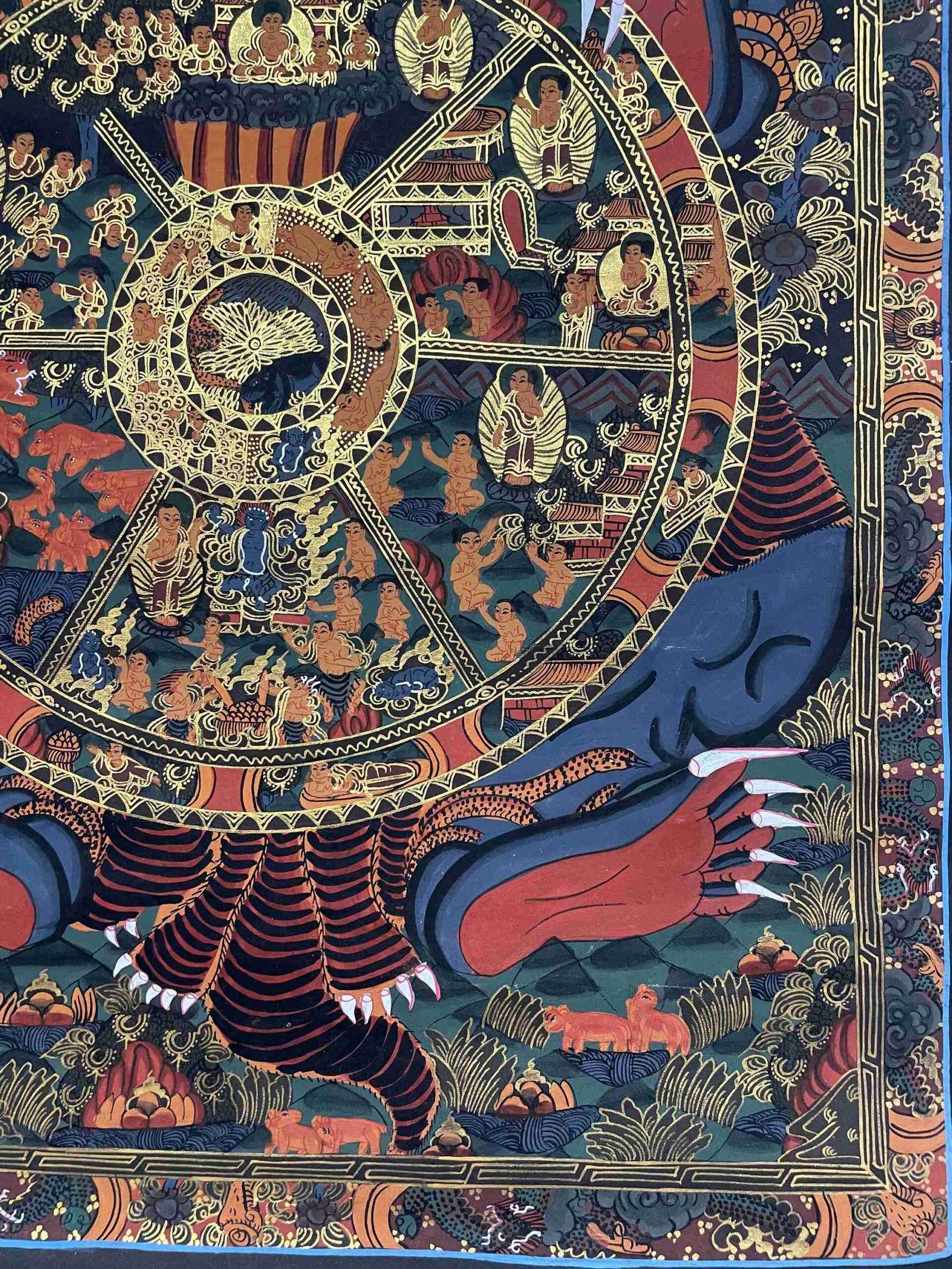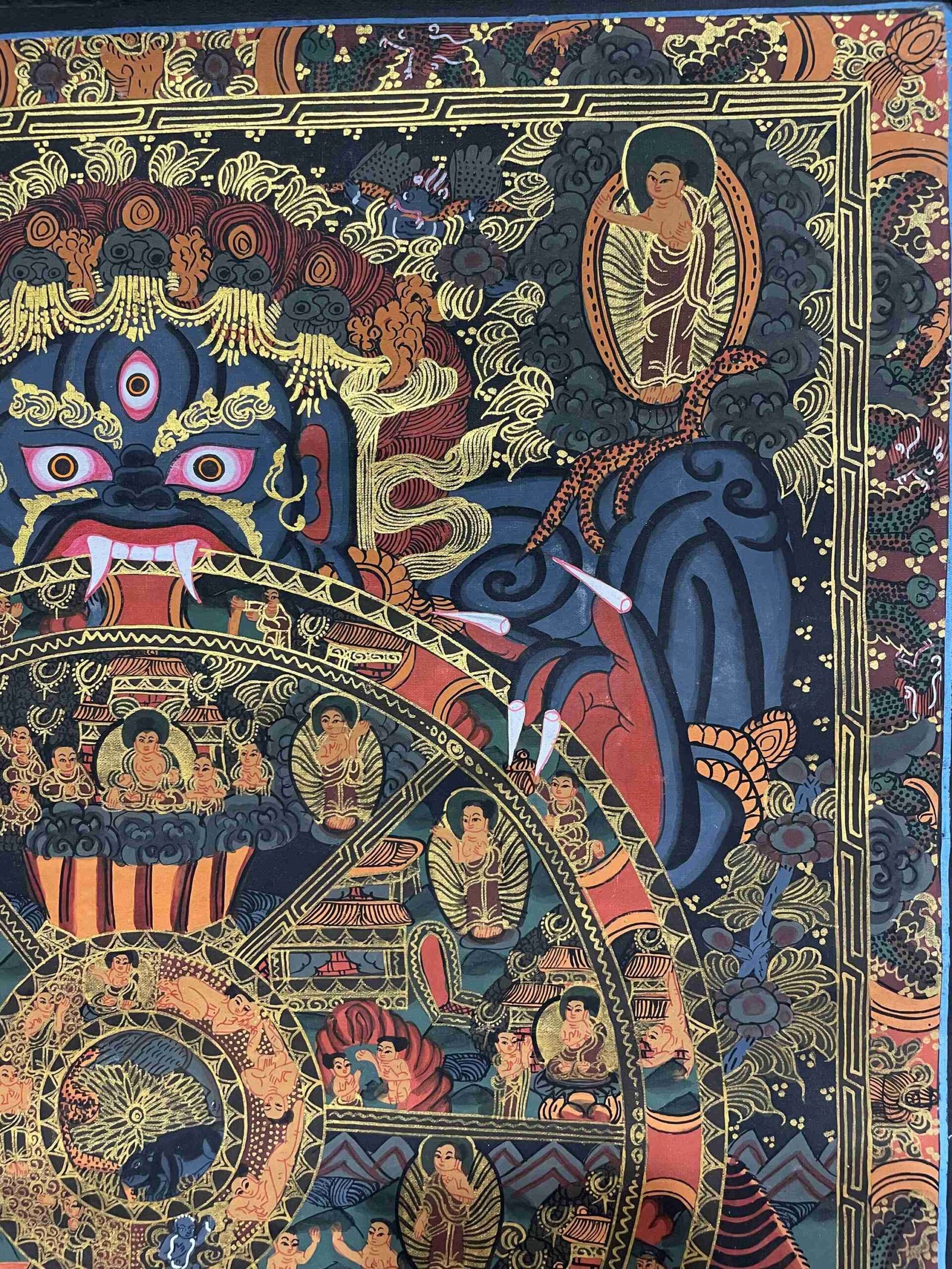 Buddhist Handmade Thangka Painting of Wheel of Life – Real Gold, Hand-Painted, Tibetan Sacred Art