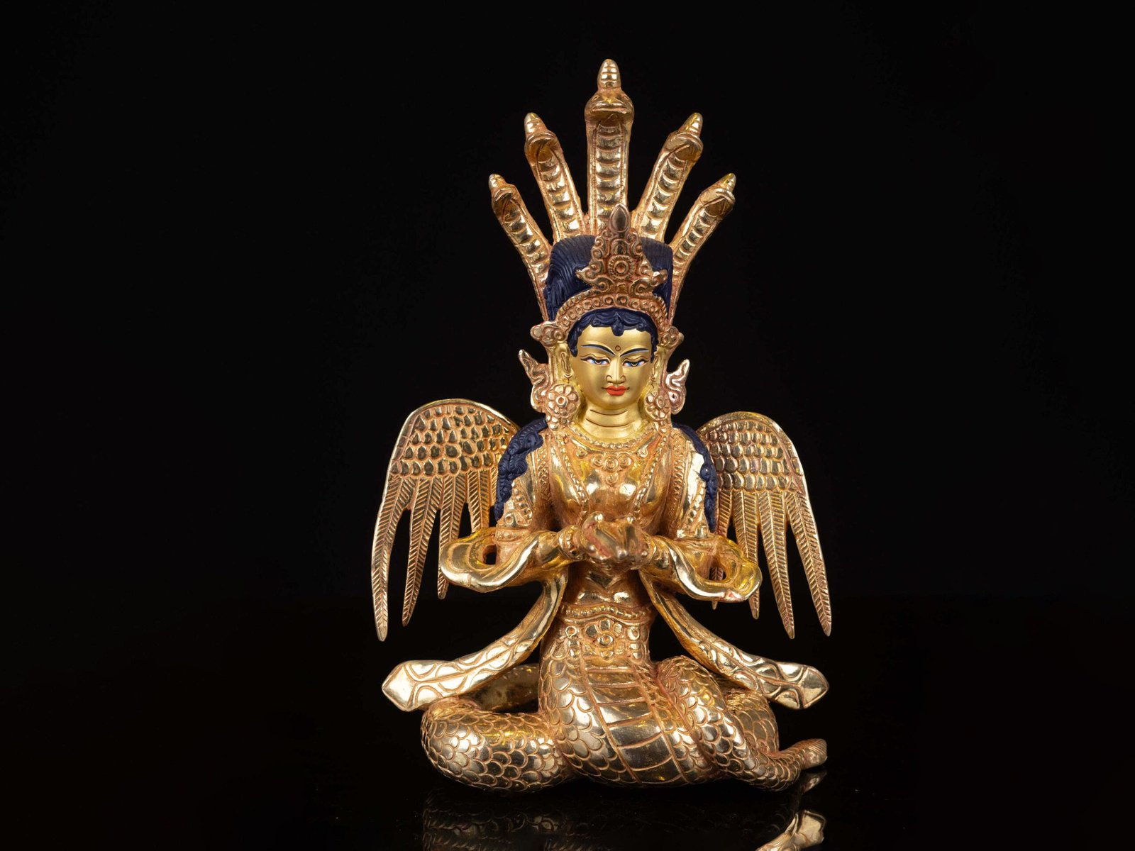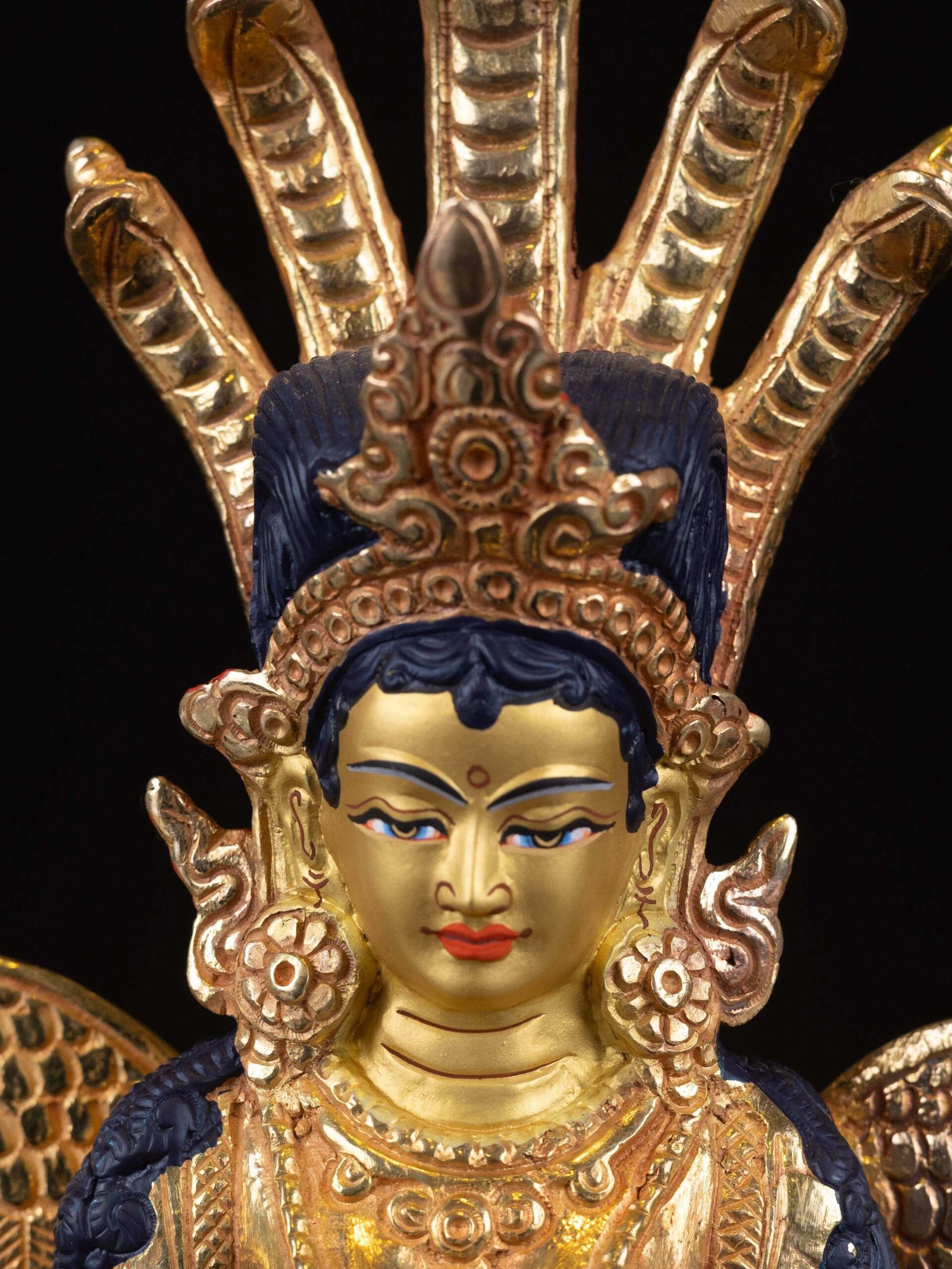• In Buddhism, the painting of the face with gold is an important ritual, symbolizing the awakening of life and presence in the statue. It enhances the spiritual essence and expression of the figure, highlighting the divine qualities of the Naga Kanya.