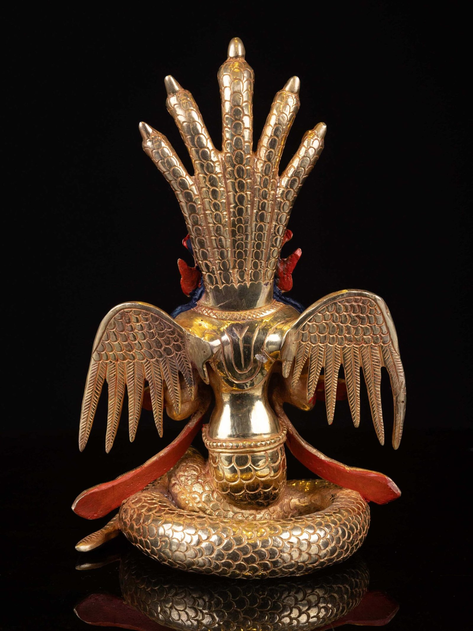 • The golden face serves as a devotional act, carefully performed by artisans, to honor the sacred energy and essence of the Naga Kanya.