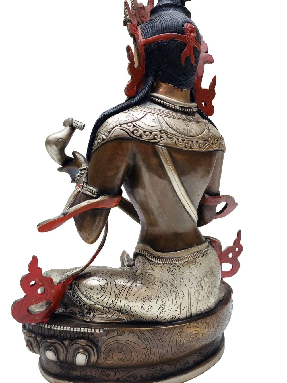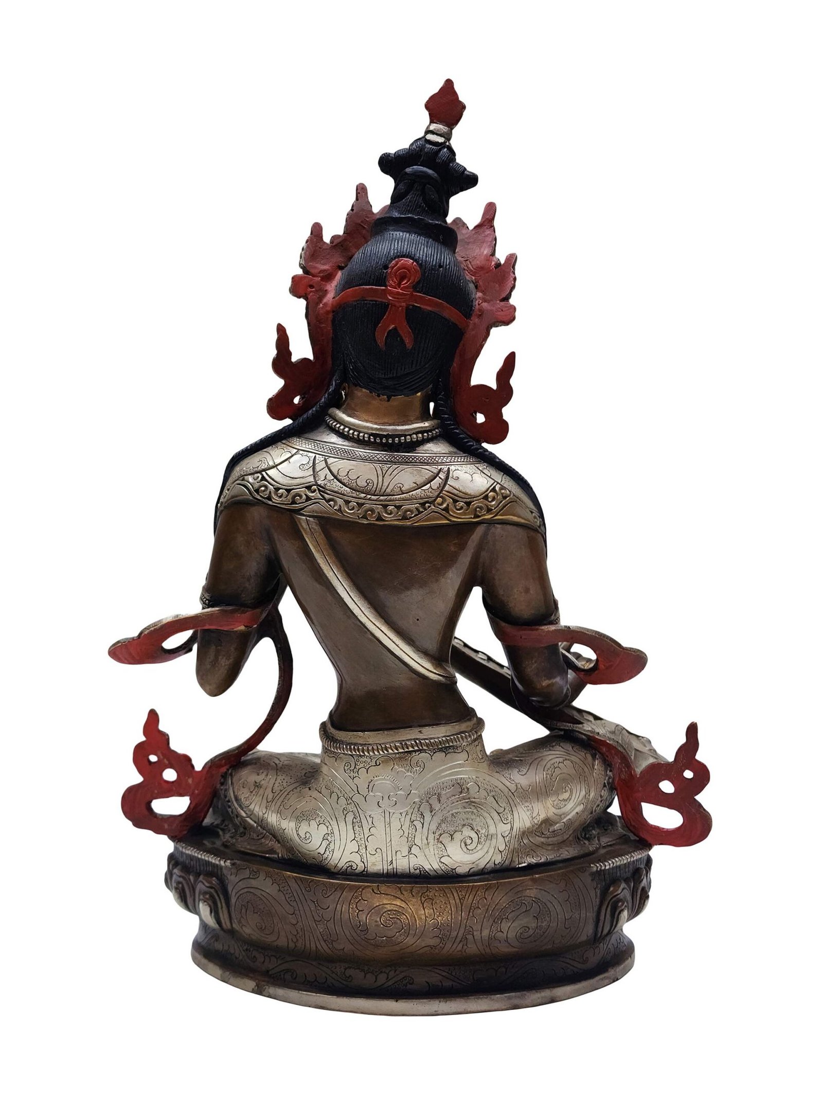 A mesmerizing fusion of silver plating and deep chocolate oxidation lends this statue an antique yet radiant charm. Carefully plated and oxidized by skilled artisans, this finish enhances fine details, adds visual depth, and reflects light in a spiritually evocative way—making it not just a statue, but a museum-quality work of art.