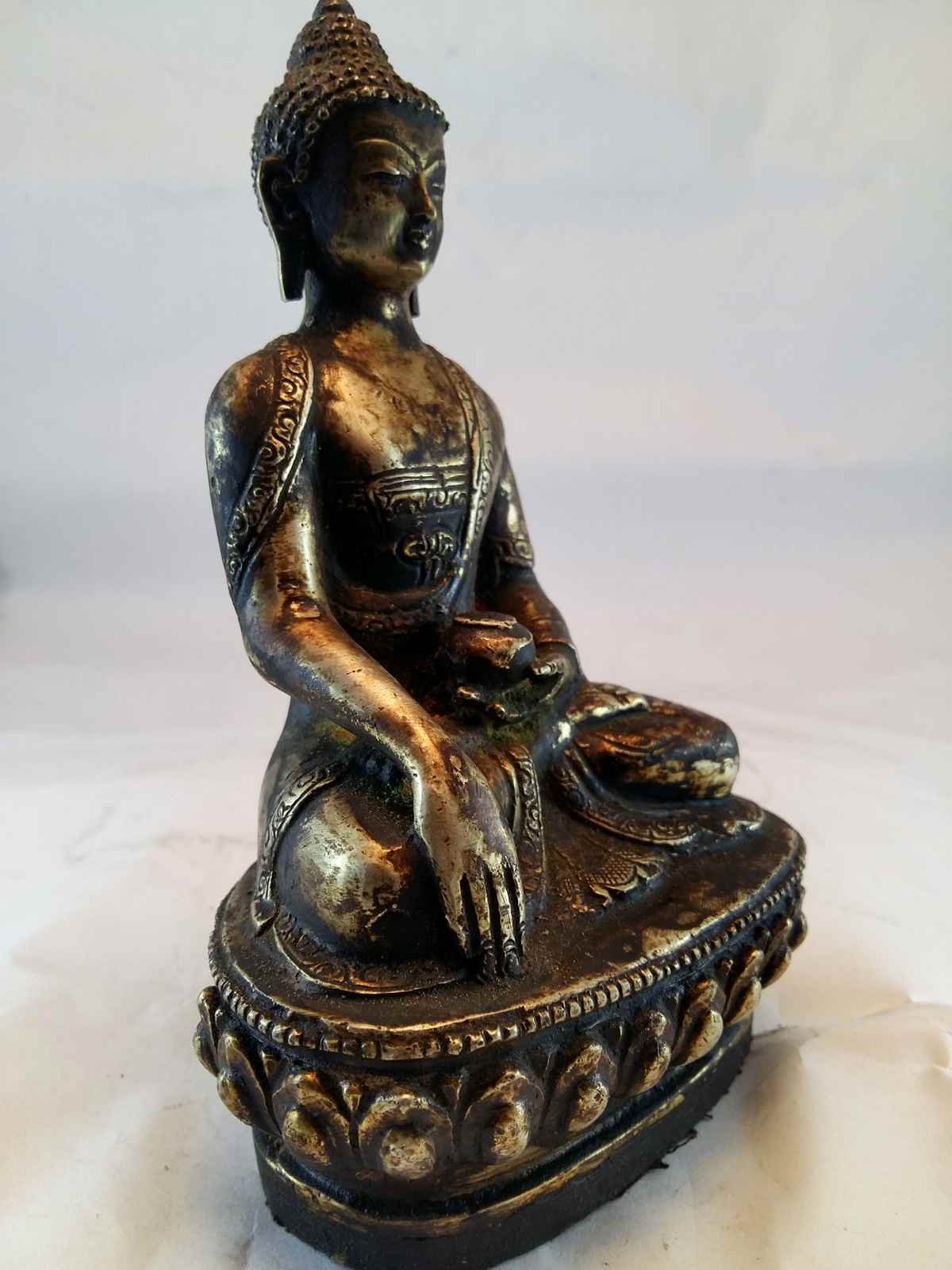 This statue is meticulously crafted using the lost-wax process, a traditional metal casting technique. Artisans first sculpt a wax model, capturing intricate details. The model is coated with ceramic layers, which, after curing, form a mold. The wax is melted away, and molten metal is poured into the cavity. Once cooled, the ceramic shell is removed, revealing a beautifully detailed metal sculpture. This time-honored method ensures exceptional quality and precision.