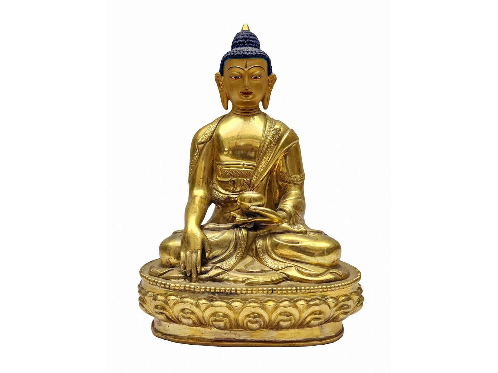 Shakyamuni Buddha Statue – Gold-Plated, Face-Painted, Handcrafted Copper (Old Stock)