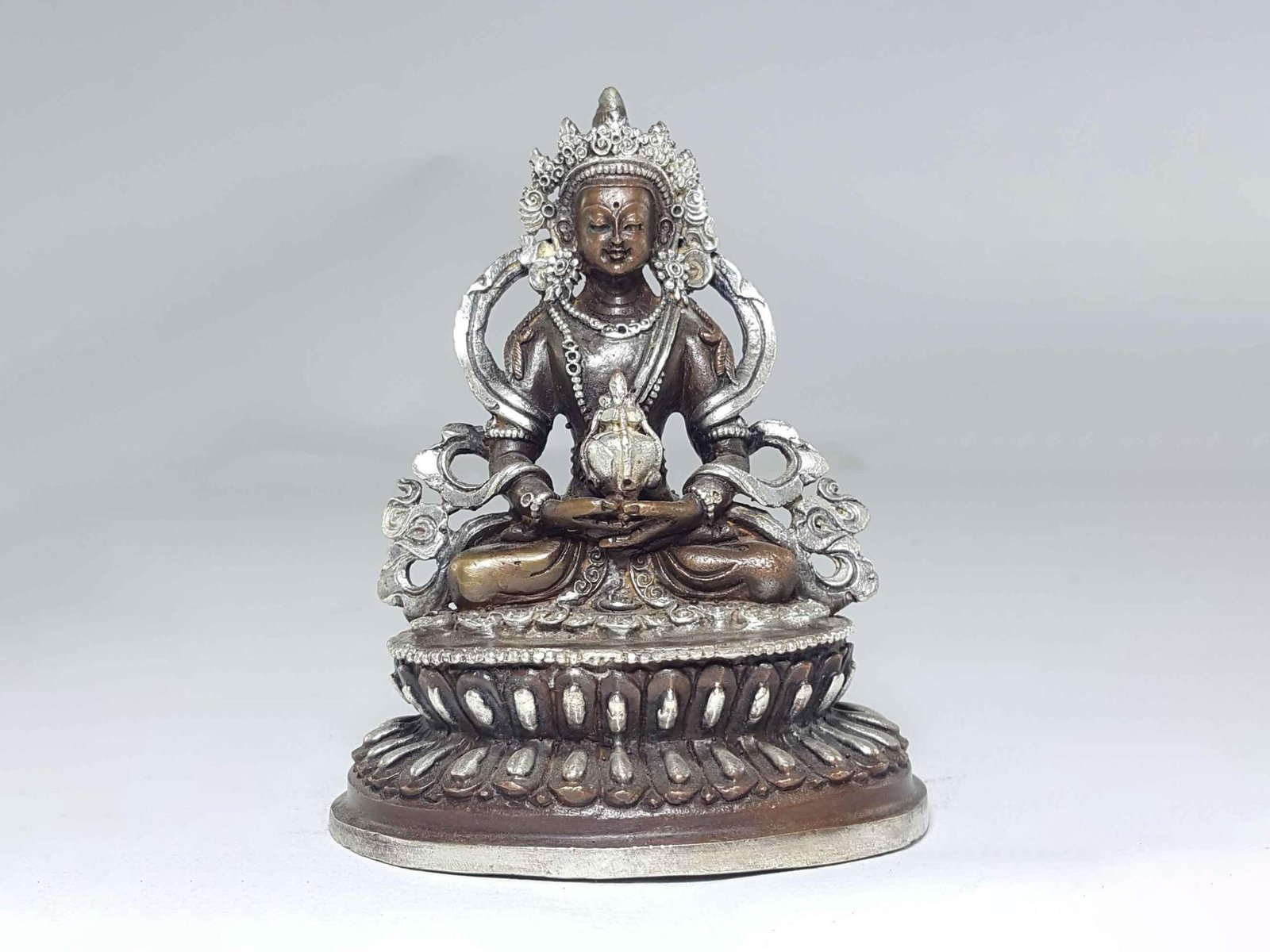 - Depicted with hands in Dhyana Mudra, holding an Ambrosia Vase that symbolizes the nectar of immortality.