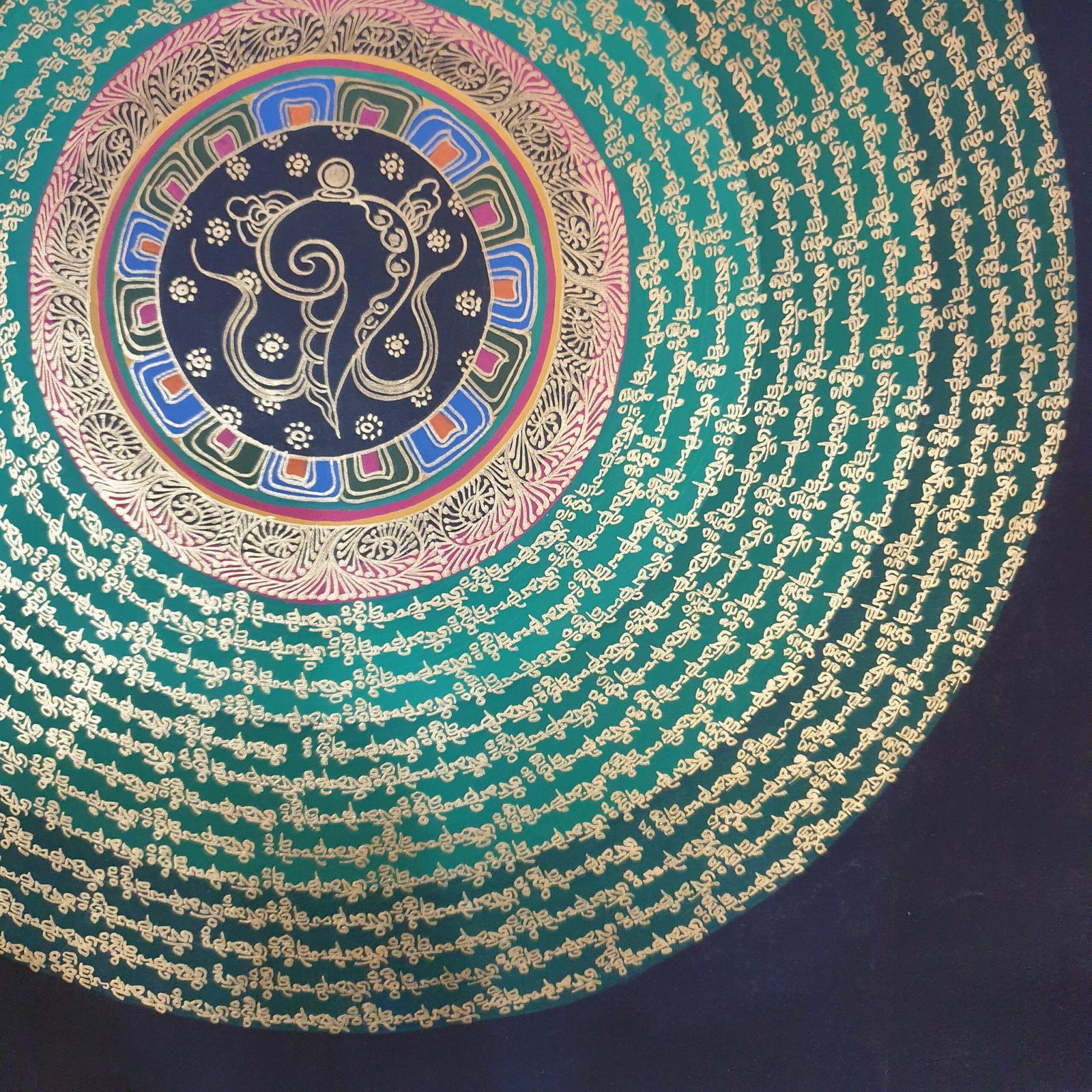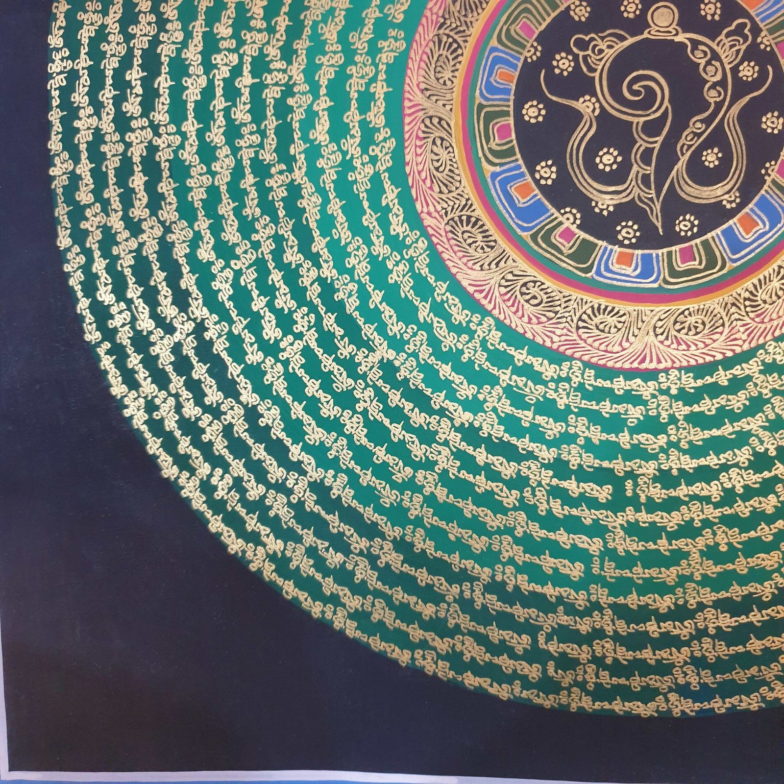 This hand-painted Mantra Mandala Thangka is ideal for spiritual practitioners, collectors, and anyone seeking a meaningful and sacred piece of Buddhist art.