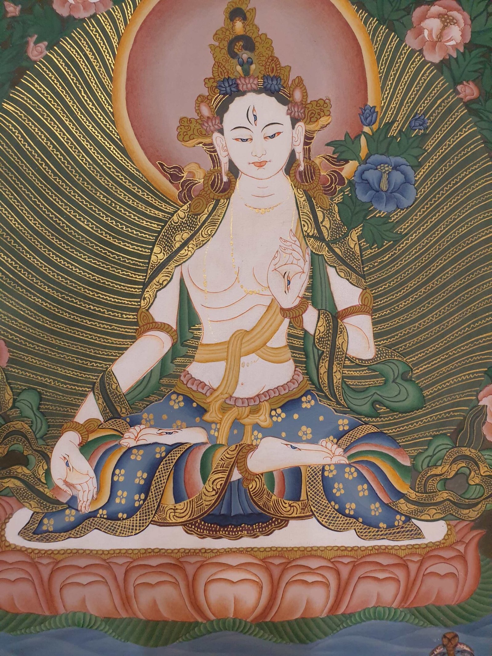 White Tara is a profoundly revered deity in Buddhist mythology, symbolizing peace, compassion, and longevity.