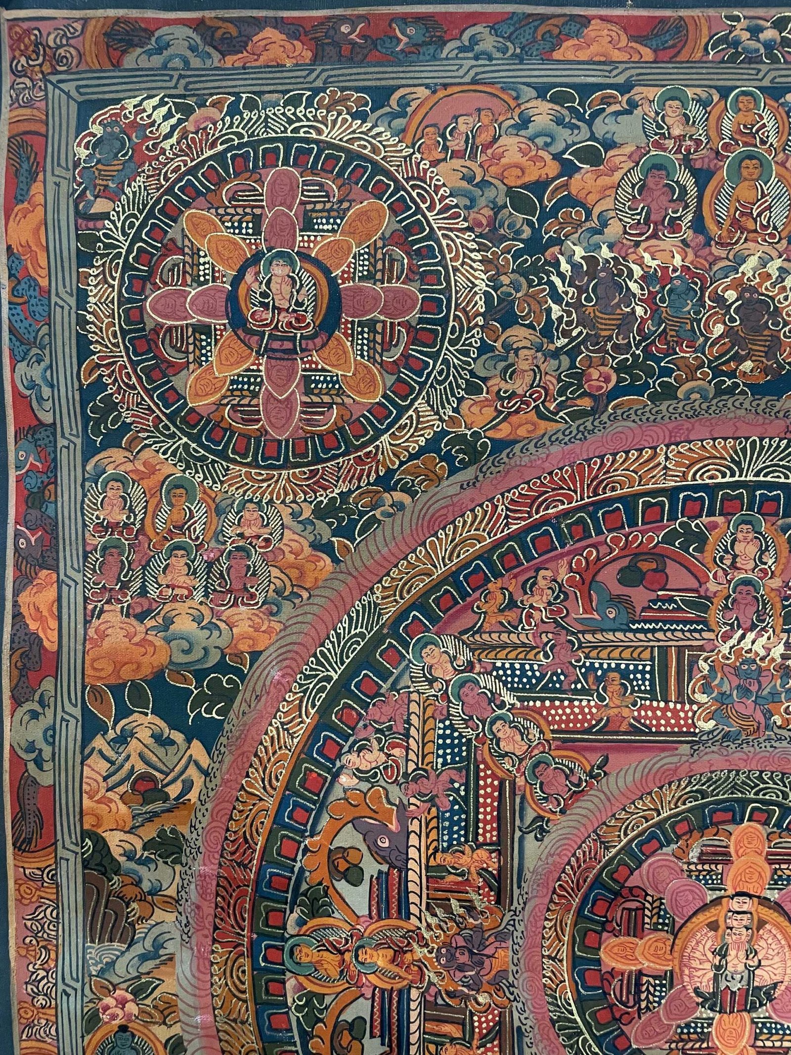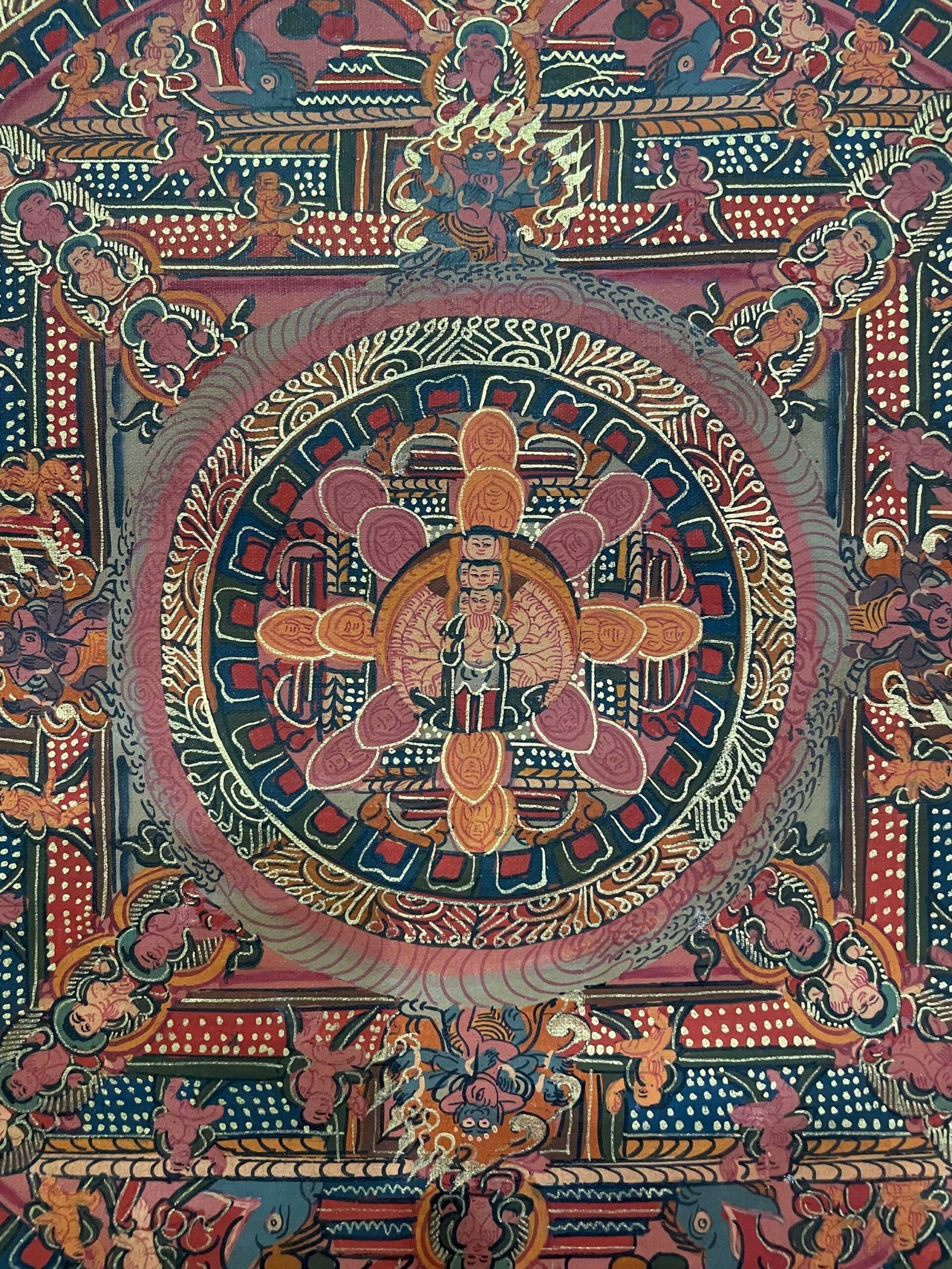 Tibetan Buddhist Thangka Painting – Hand-Painted Pancha Buddha Mandala