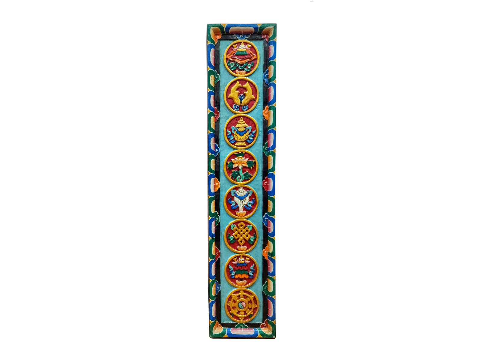 Traditional Tibetan Ritual Wall Hanging – Ashtamangala Mandala (Wooden, Hand-Painted)