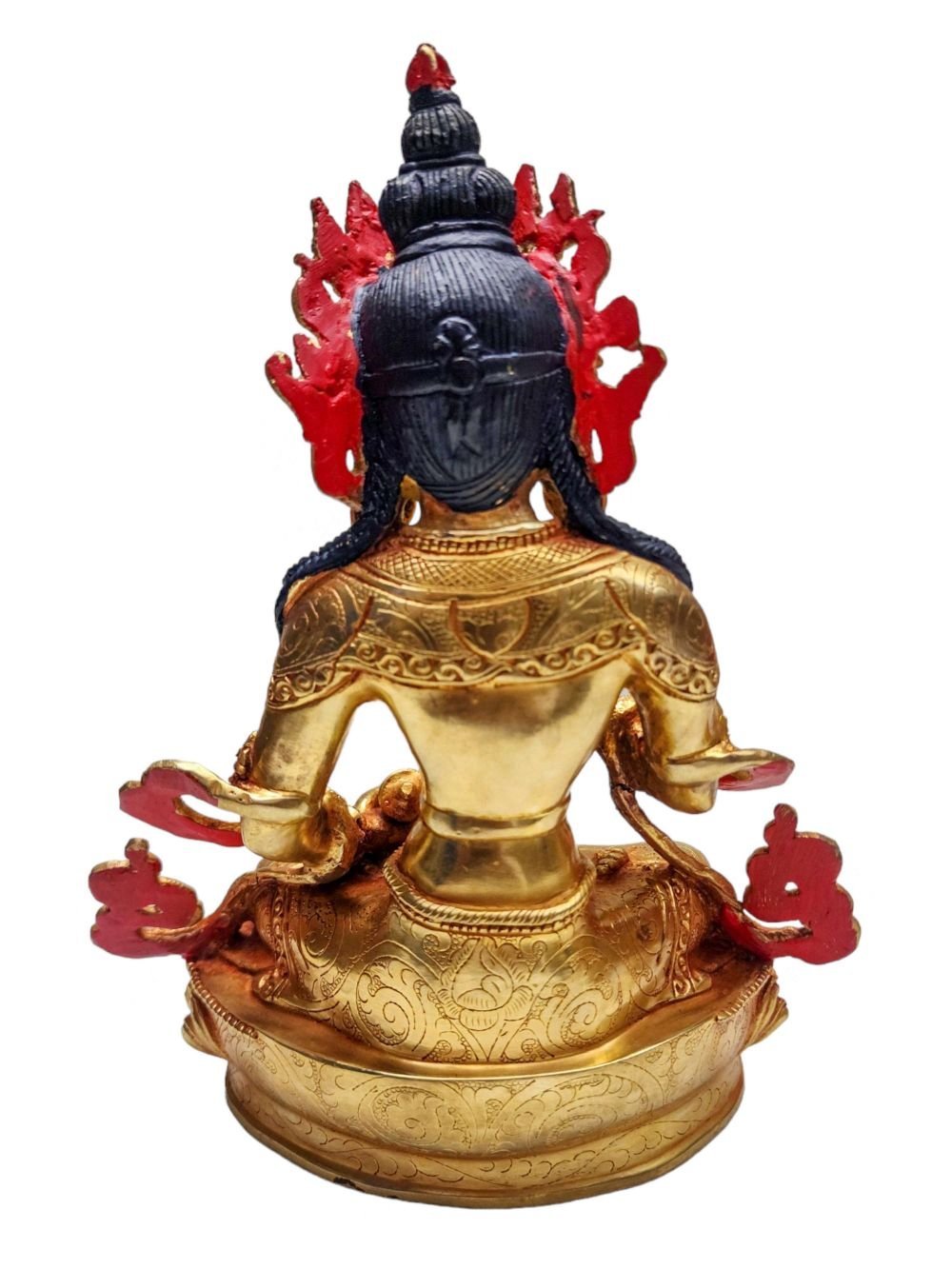 Unlike modern electroplating, this method involves bonding real gold to the surface of the statue through a fire-based process. Though more time-consuming and costly, fire gilding produces a richer, more luminous finish and greater durability. Its recent resurgence reflects a growing appreciation for authentic Nepali craftsmanship and the timeless quality it brings to sacred art.