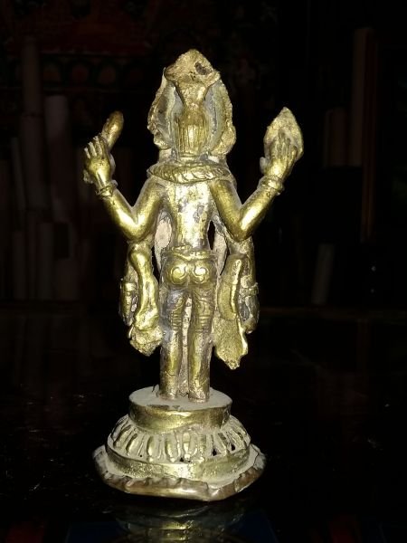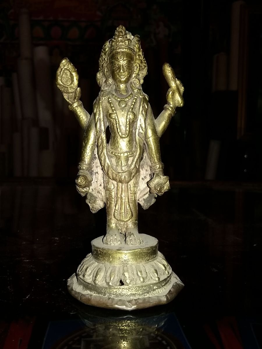 - Typically portrayed with four arms, symbolizing his omnipotence and omnipresence.