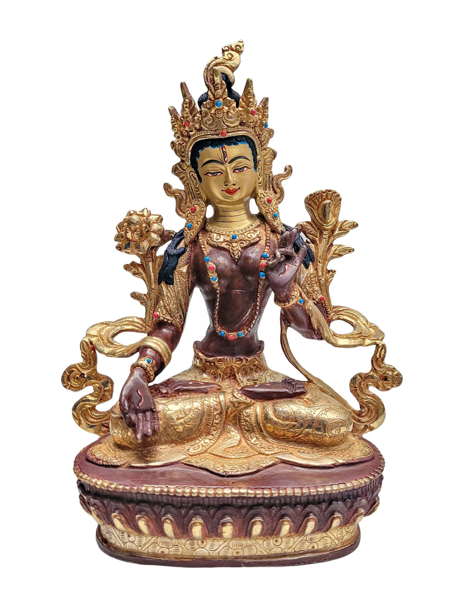 White Tara Statue | Partly Gold-Plated | Face Painted | Handmade Copper Sculpture