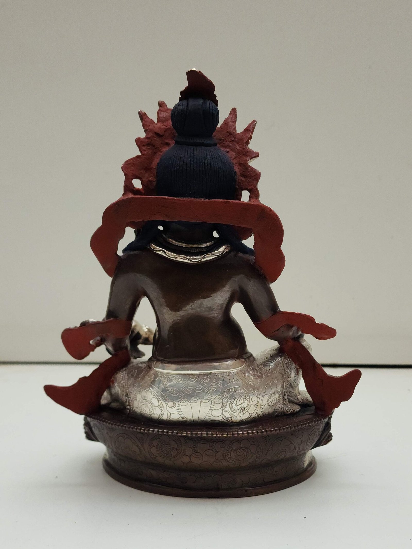 While the silver-plated areas shimmer with reflective brilliance, the oxidized sections deepen the visual texture, evoking a sense of age, depth, and sacred mystique. The result is a visually dynamic and spiritually resonant statue that feels both ancient and timeless.